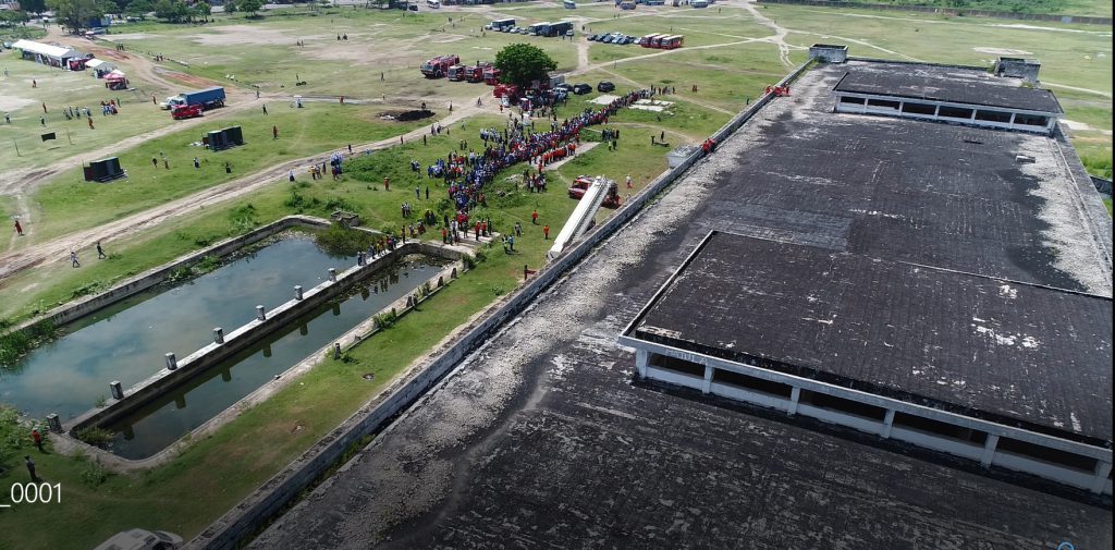 Another simulation was staged, this time a mission to rescue people trapped on top of a building. We flew our multicopter to help the Commanding Officer to acquire additional information on the building as well as the people trapped. The aerial video provided helped him to guide his team on how to best save the trapped people. It also allowed to inquire how many people needed to be rescued as from the ground, we could only see the ones standing on the side waving their hands for help and not the ones who were lying on the ground or sitting due to their injuries.
