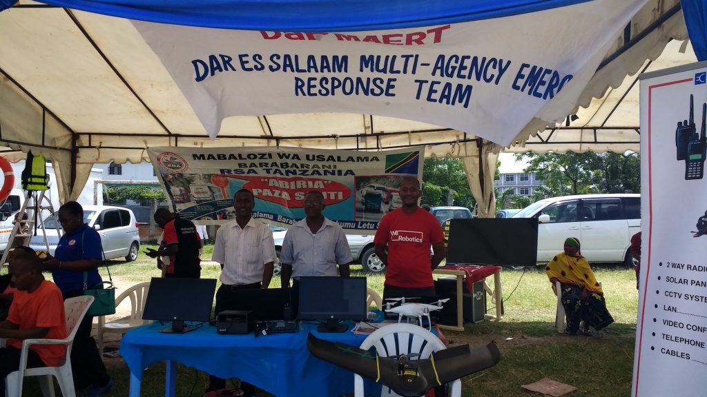 Tanzania Flying Labs is collaborating with the Dar es Salaam Multi-Agency Emergency Response Team (Dar-MAERT) and together we wanted to create awareness on how drones can be used in rescue missions and disaster response. The Fire Fighting Festival, held in Dar es Salaam in December 2017, was the perfect venue to showcase the technology and give examples on how drones can be integrated in rescue missions and when responding to a disaster.