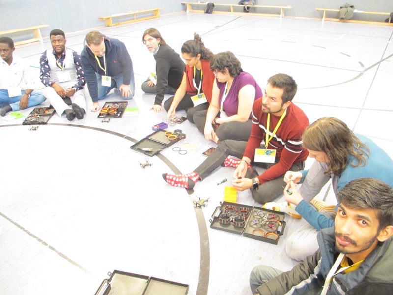 La primera parte de la capacitación cubrió la historia y antecedentes de la tecnología de drones y sus componentes y capacidades. También proporcionó ejemplos de cómo se está utilizando la tecnología de drones en varias industrias de una manera divertida e interactiva. La segunda parte de la capacitación implicó armar drones utilizando kits proporcionados por Spain Flying Labs, lo que fue una tarea divertida y desafiante. Después de aprender sobre seguridad y planificación previa al vuelo, la tercera parte de la capacitación permitió a los participantes pilotar drones multirotor de entretenimiento en interiores. Esta fue la parte más emocionante: los participantes podían volar los drones ellos mismos. Finalmente, la última parte de la capacitación se centró en robots terrestres, que fueron informativos e interactivos.