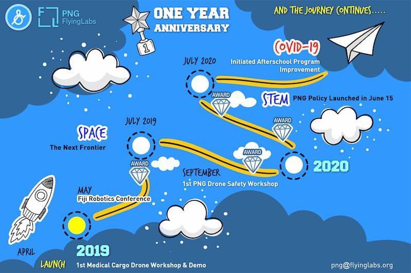 We at Papua New Guinea Flying Labs are happy to share some highlights of our first year in operation with the WeRobotics global community, Flying Labs network, and the broader community. Working with technology partners, professionals in various industries and policymakers in government has helped us identify our strengths and areas for improvements. This has paved the way for strategic partnerships and community support to harness inclusive opportunities and embrace drones and STEM education in Papua New Guinea.